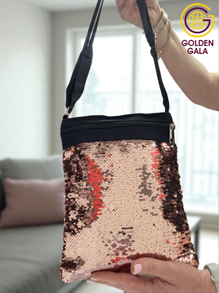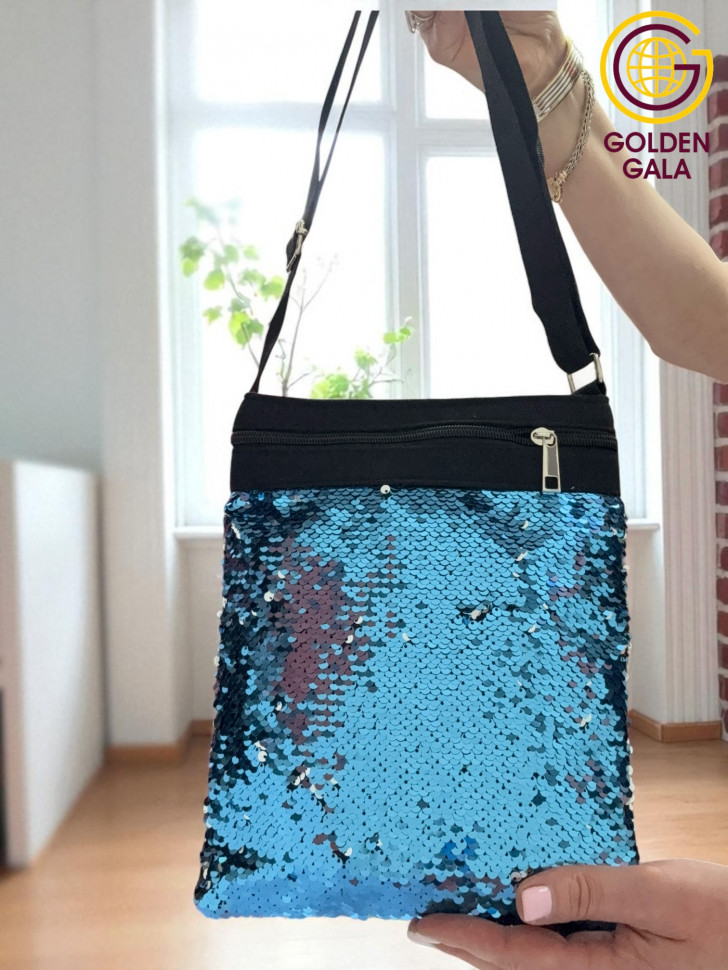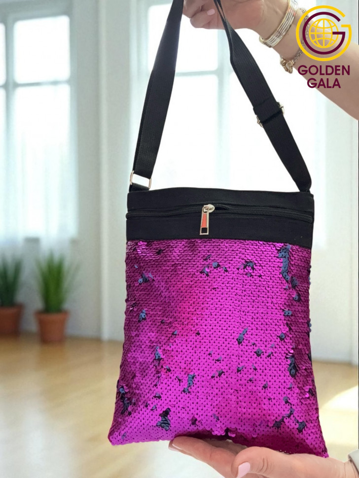 Сумка-планшет с пайетками на длинной ручке 22,5х27,5  см 6 фото