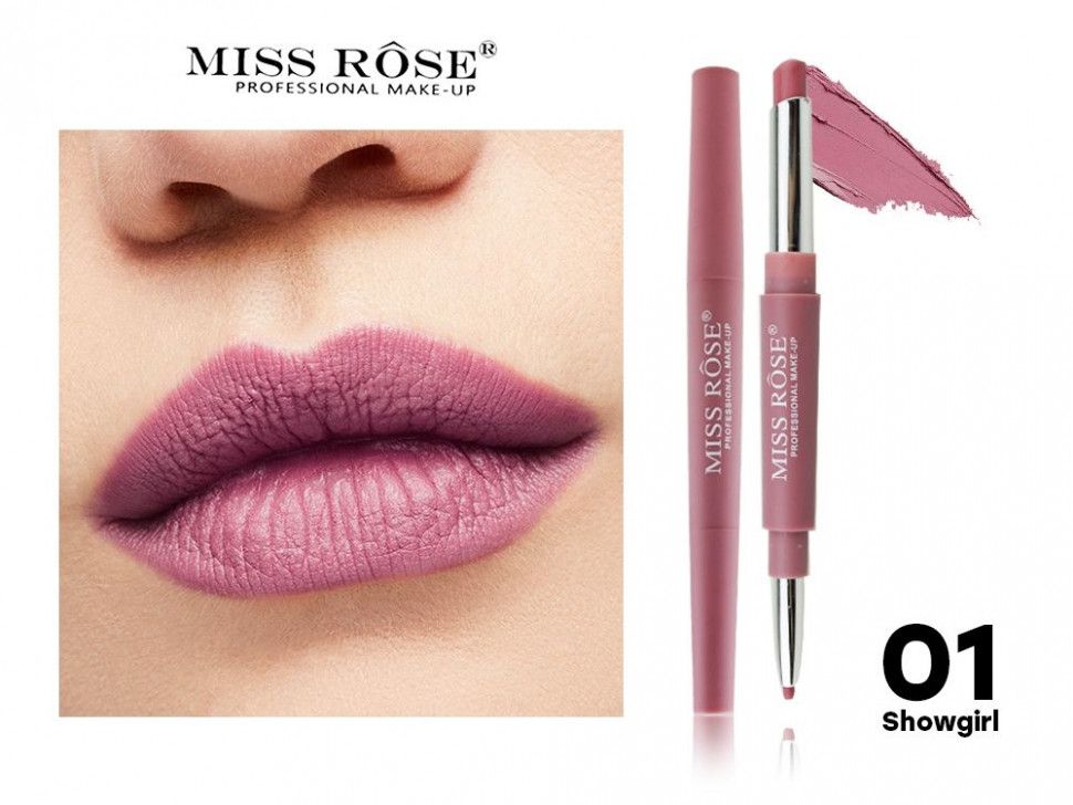Кремовая помада + карандаш для губ MISS ROSE тон 02 SWEET GIRL