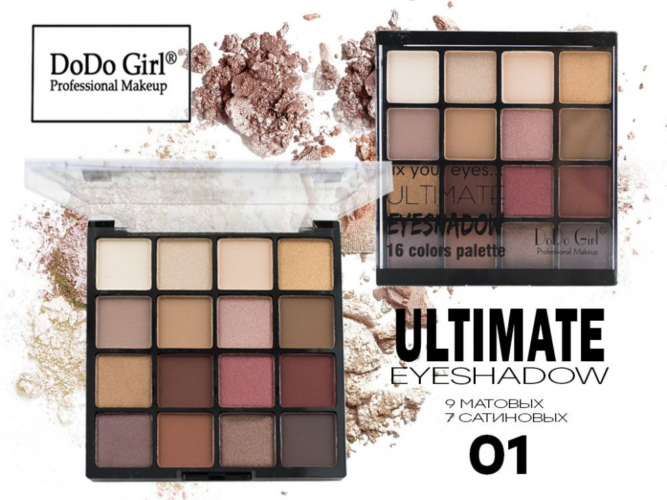 Тени DO DO GIRL Eyeshadow перламутр+матовые 16 цветов ТОН 01 Арт 3048 2 фото