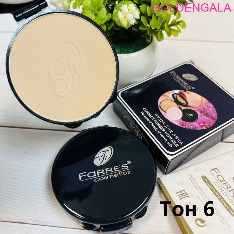 Пудра для лица Farres F-3013 компактная с шелком тон 6 2 фото