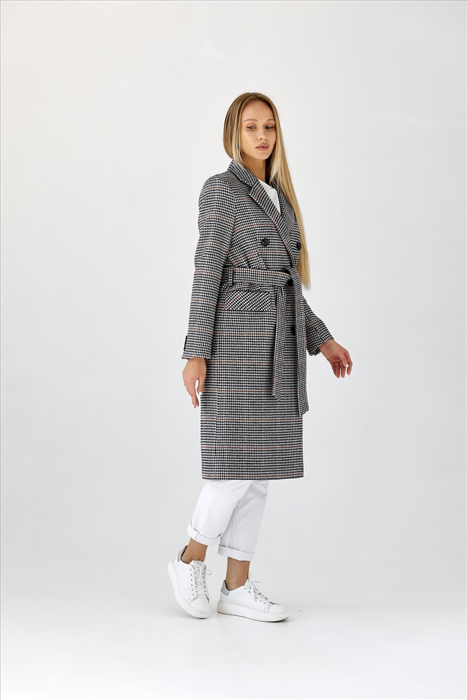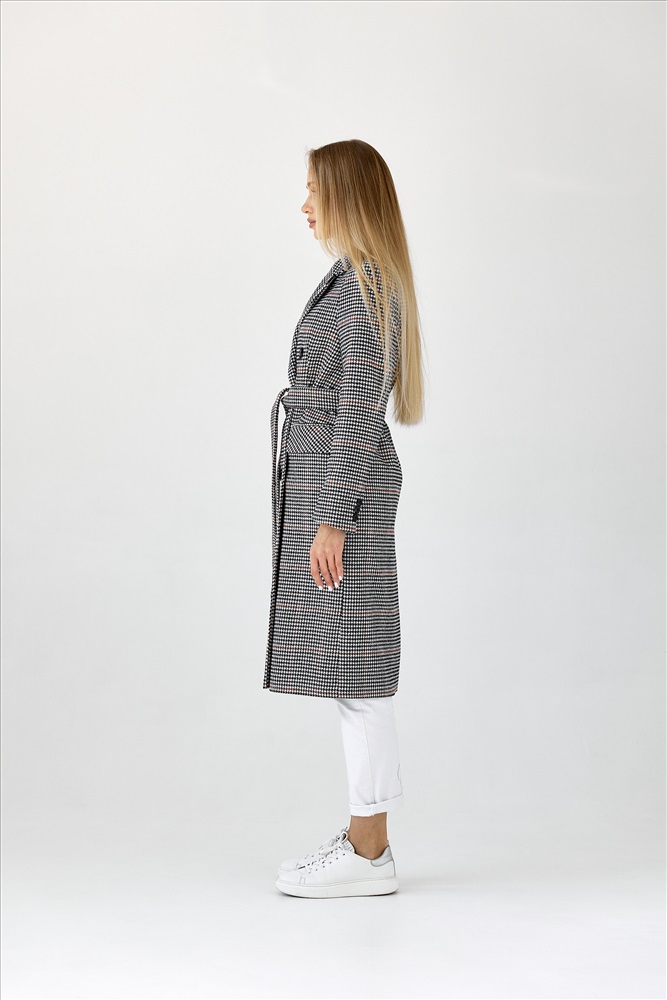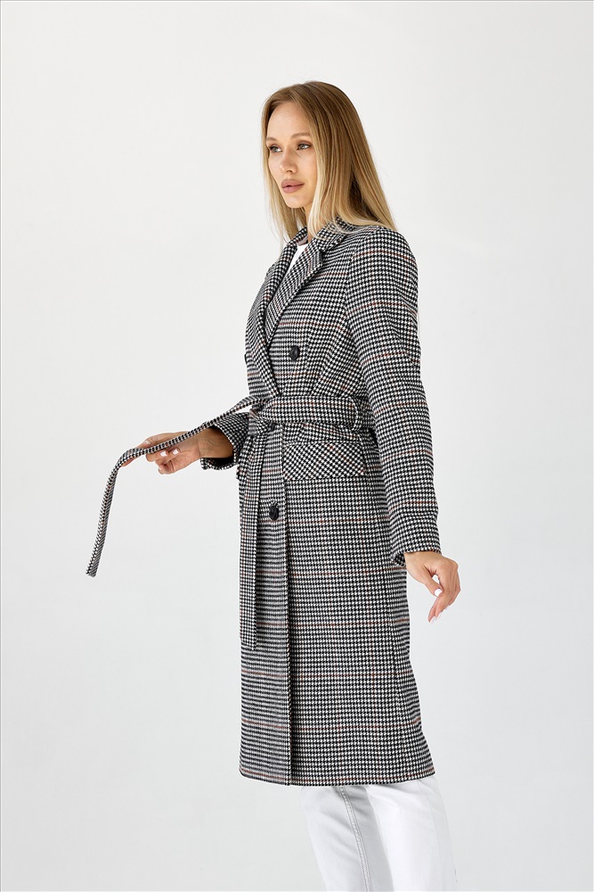 Пальто женское демисезонное 25885/о (серый ёлочка)