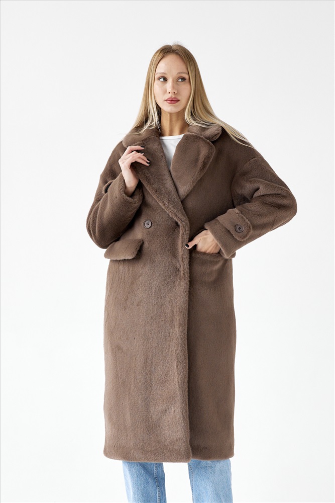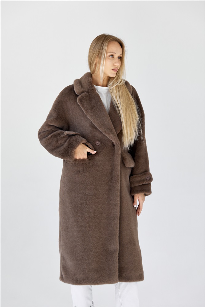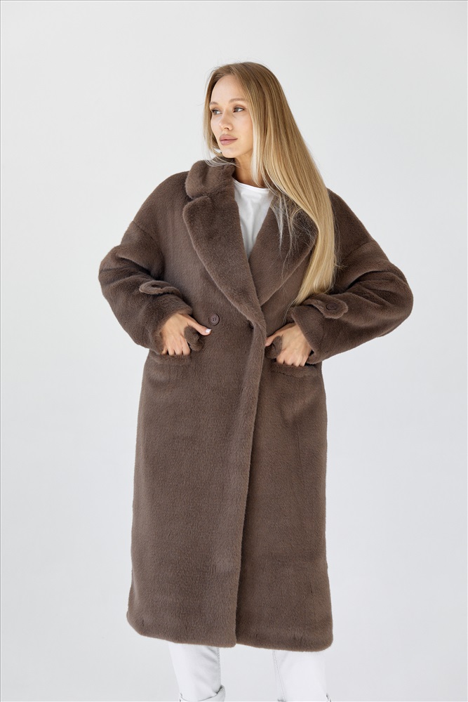 Пальто женское демисезонное М-42 (коричневый/ёлочка)