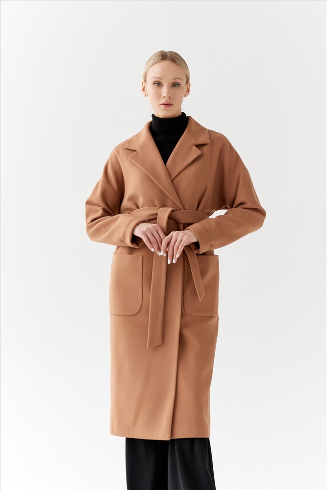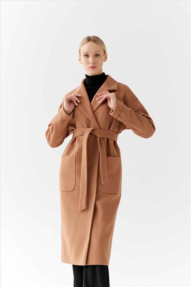 Пальто женское демисезонное 26820 (кэмел) 8 фото