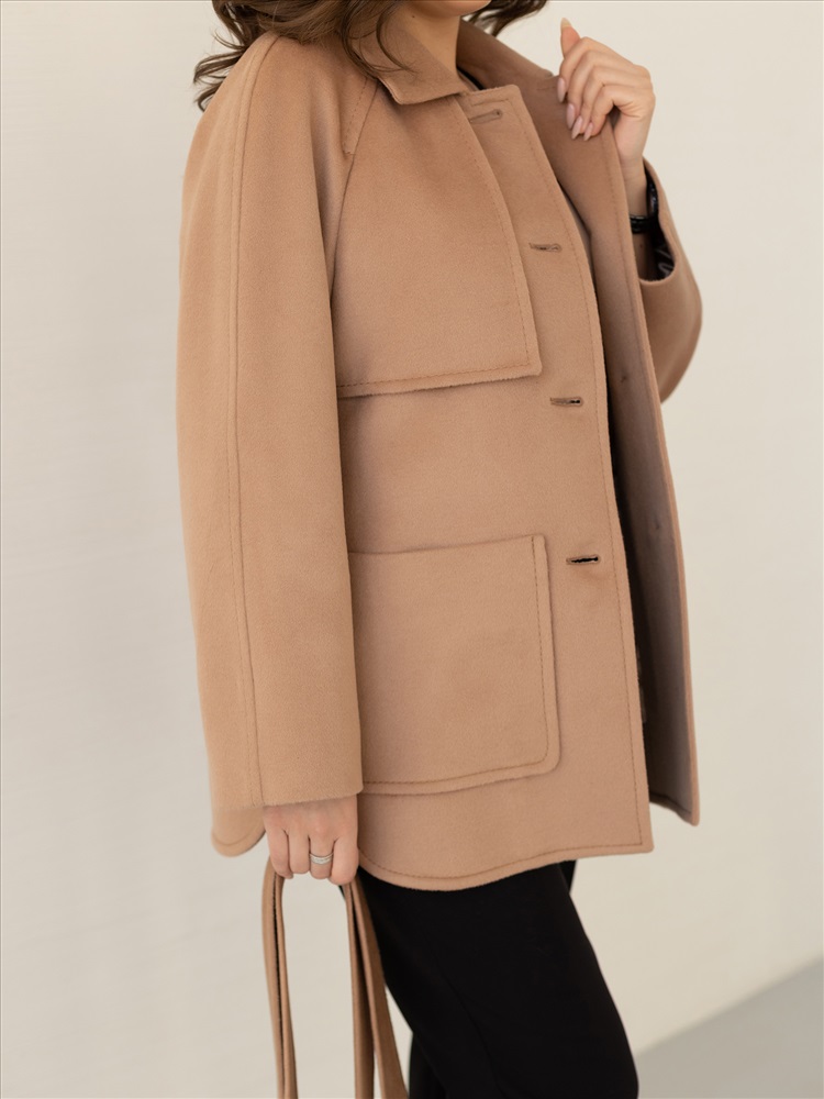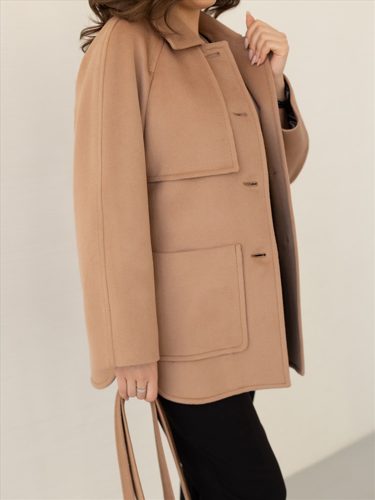 Пальто женское демисезонное 25010 (кэмел/ворсовая ткань) 8 фото
