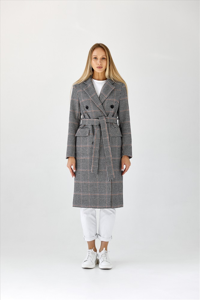 Пальто женское демисезонное 25415 (клетка britny) 9 фото