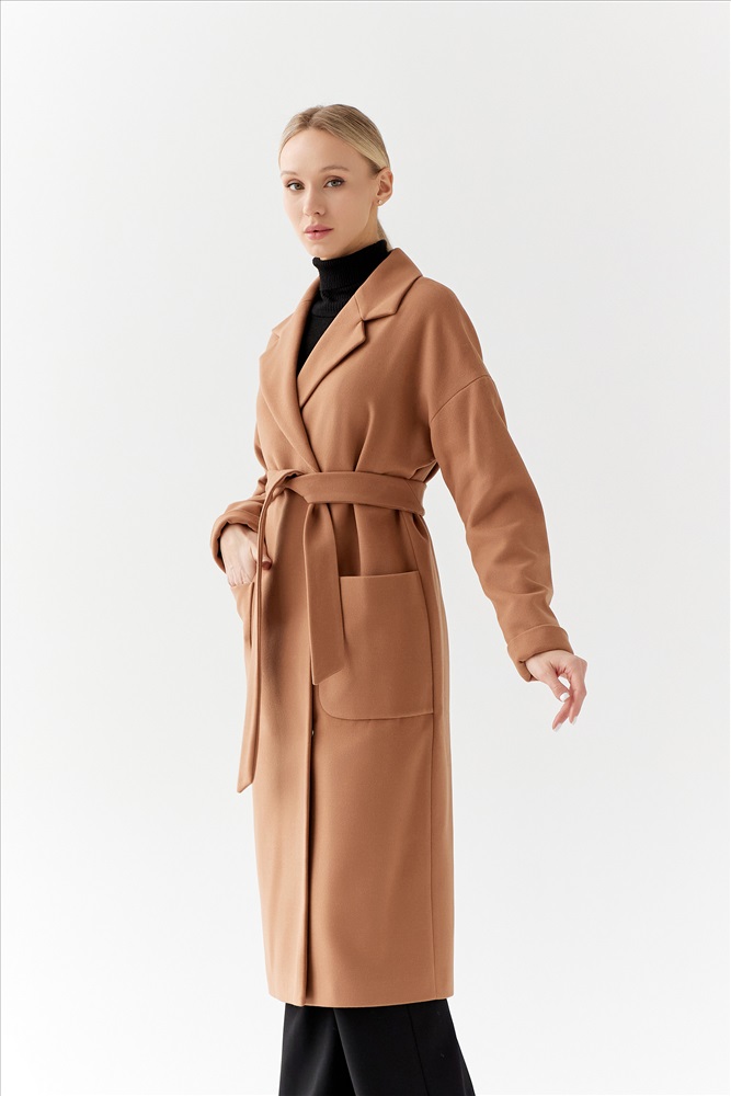 Пальто женское демисезонное 25799 (кэмел) 4 фото