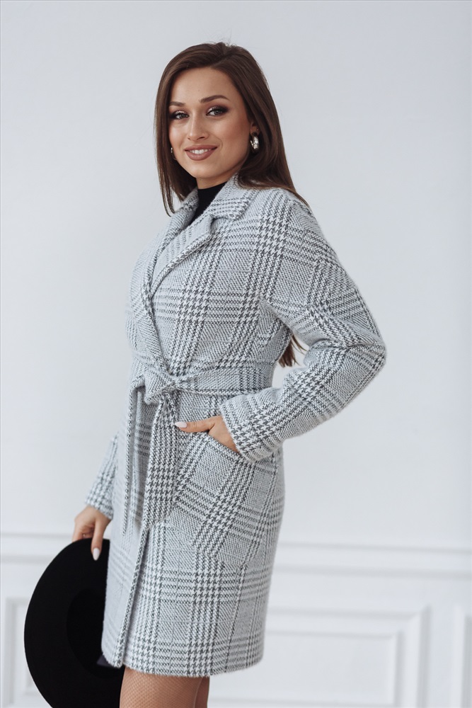 Пальто женское демисезонное 22400  (серый/клетка) 4 фото