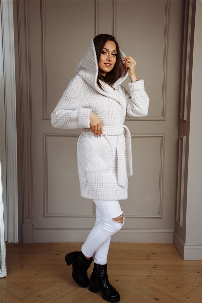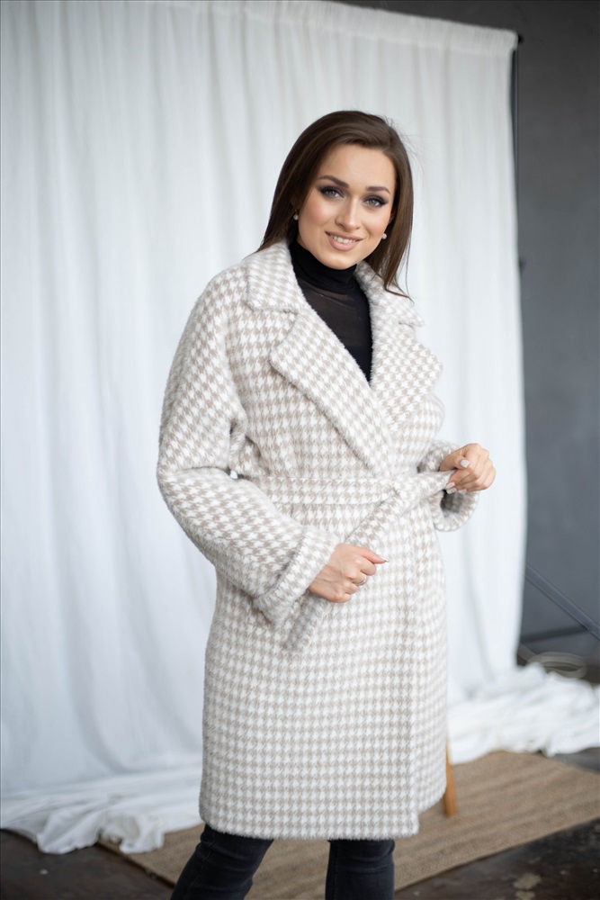 Пальто женское демисезонное 22450 (беж./клетка) 5 фото