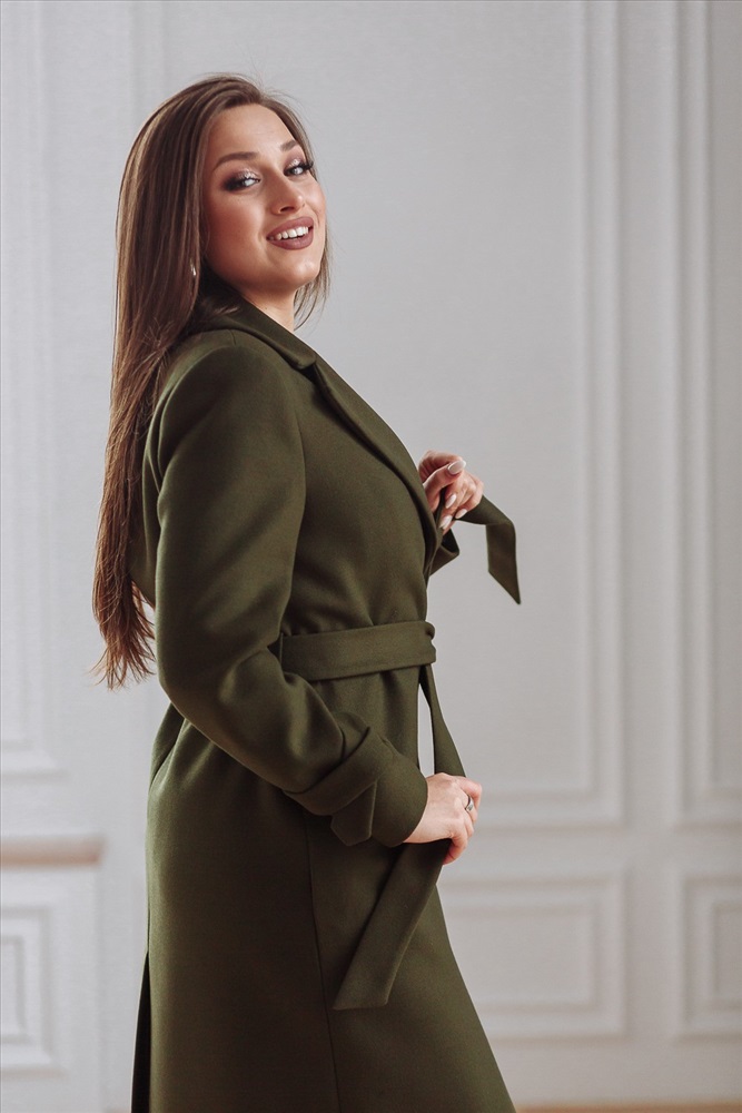 Пальто женское демисезонное 22530  (хаки) 3 фото