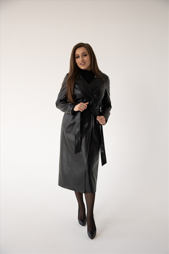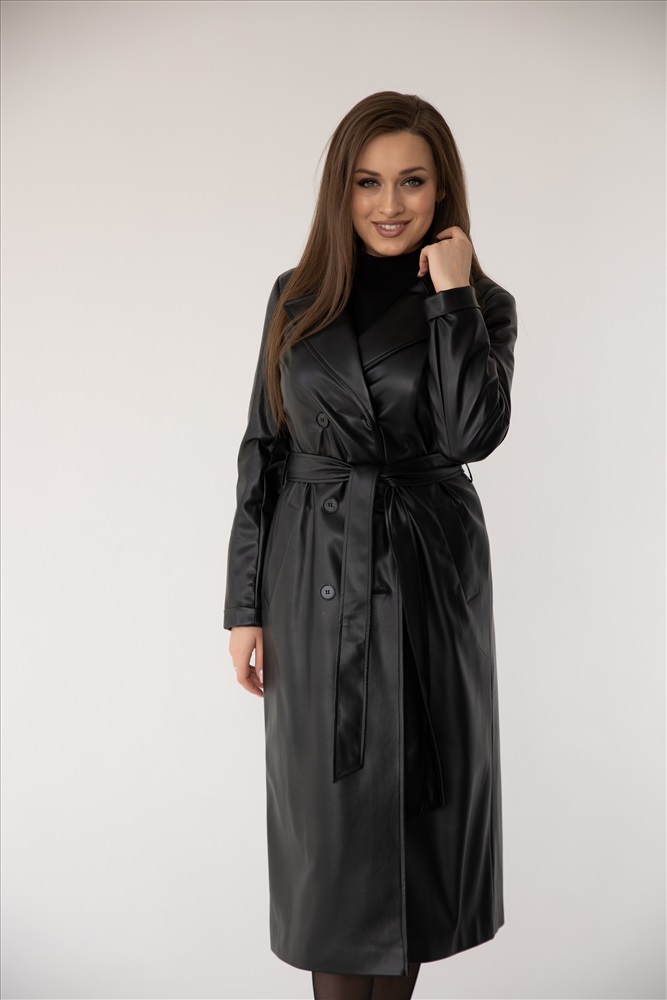 Плащ женский 1115 (черный/экокожа) 6 фото