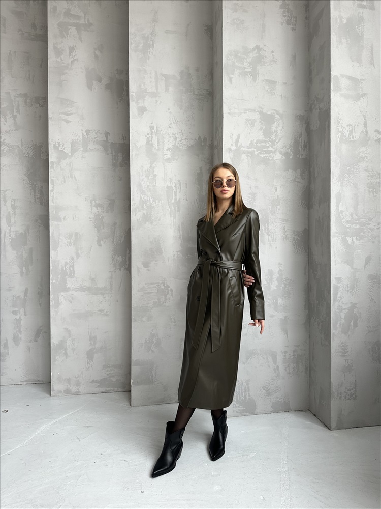 Плащ женский 1115 (хаки/экокожа) 2 фото