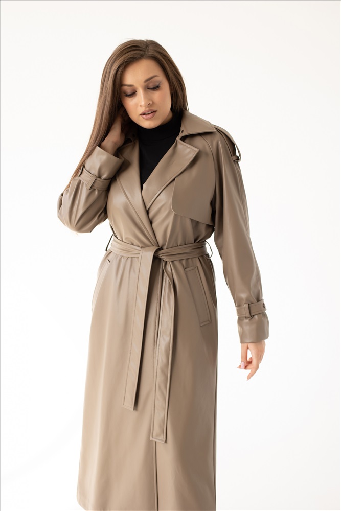 Плащ женский 1826 (бежевый/экокожа) 4 фото