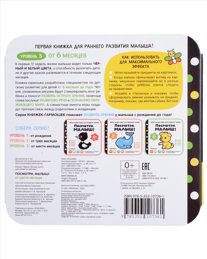 Черно-белые книги для развития зрения. Посмотри, малыш! Уровень 3. От шести месяцев 3 фото