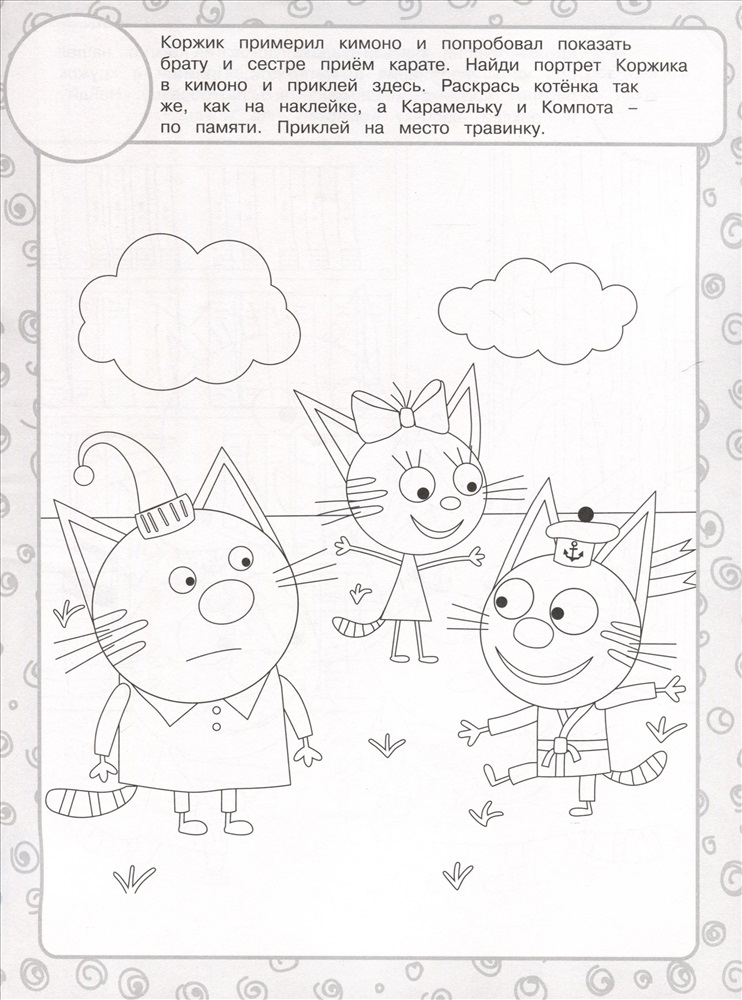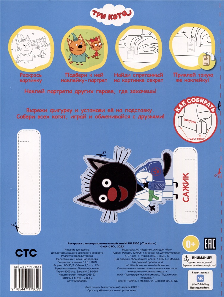 Серия: Вырезаем и играем! Фигурка на обороте Три кота Раскраска с многоразовыми наклейками, № PH 236