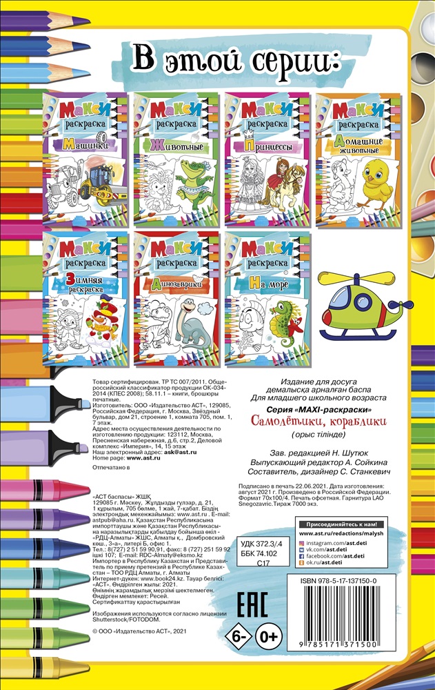 В нашем каталоге вы найдете: самые различные журналы, детские книги, раскраски для детей, водные раскраски, раскраски для девочек, раскраски для мальчиков, прописи, подарочные книги, коллекционные издания, водные раскраски, аппликации, поделки, рабочие тетради, книги для малышей, книги игры, книги пазлы, книги для дошкольников, раскраски антистресс, сказки и басни, раскраски с наклейками, книги в подарок, книжки с наклейками, книги по рукоделию, кроссворды, тесты, стихи и прозу, фантастику и детективы.