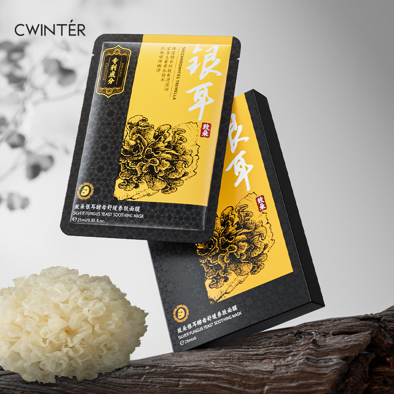 Успокаивающая тканевая маска для лица с грибами серебряная тремелла Zhiduo Saccharomyces Tremella Silver Fungus Yeast Soothing Mask, 5*25мл.