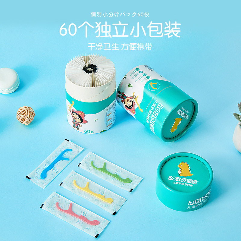 Флоссеры детские в индивидуальных упаковках в тубе ROROLL, 60 шт/туба
