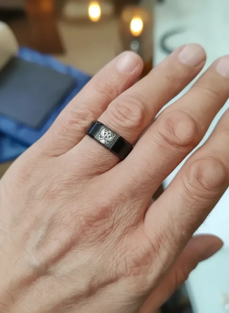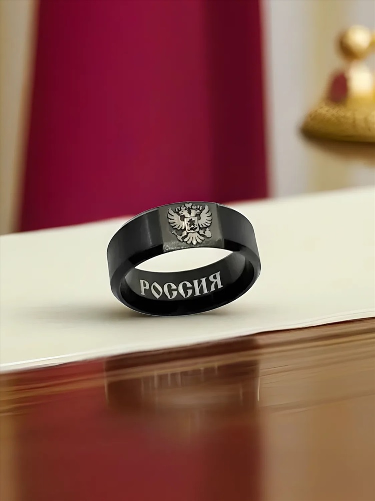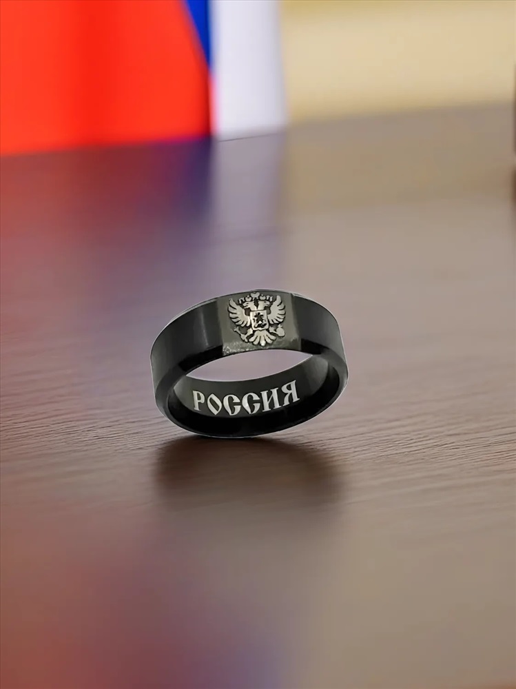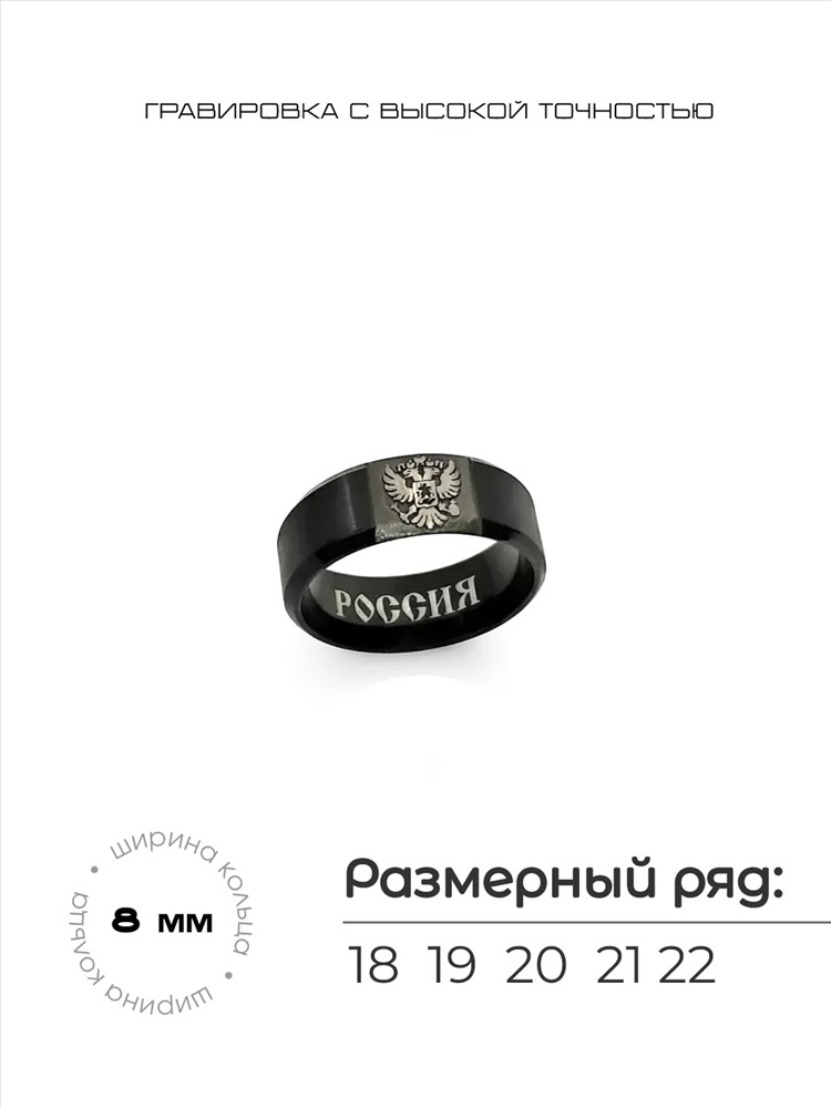 Кольцо из нержавеющей стали с гравировкой герба России 6 фото