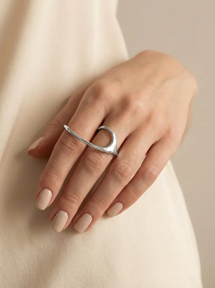 Стильное кольцо на два пальца 6 фото