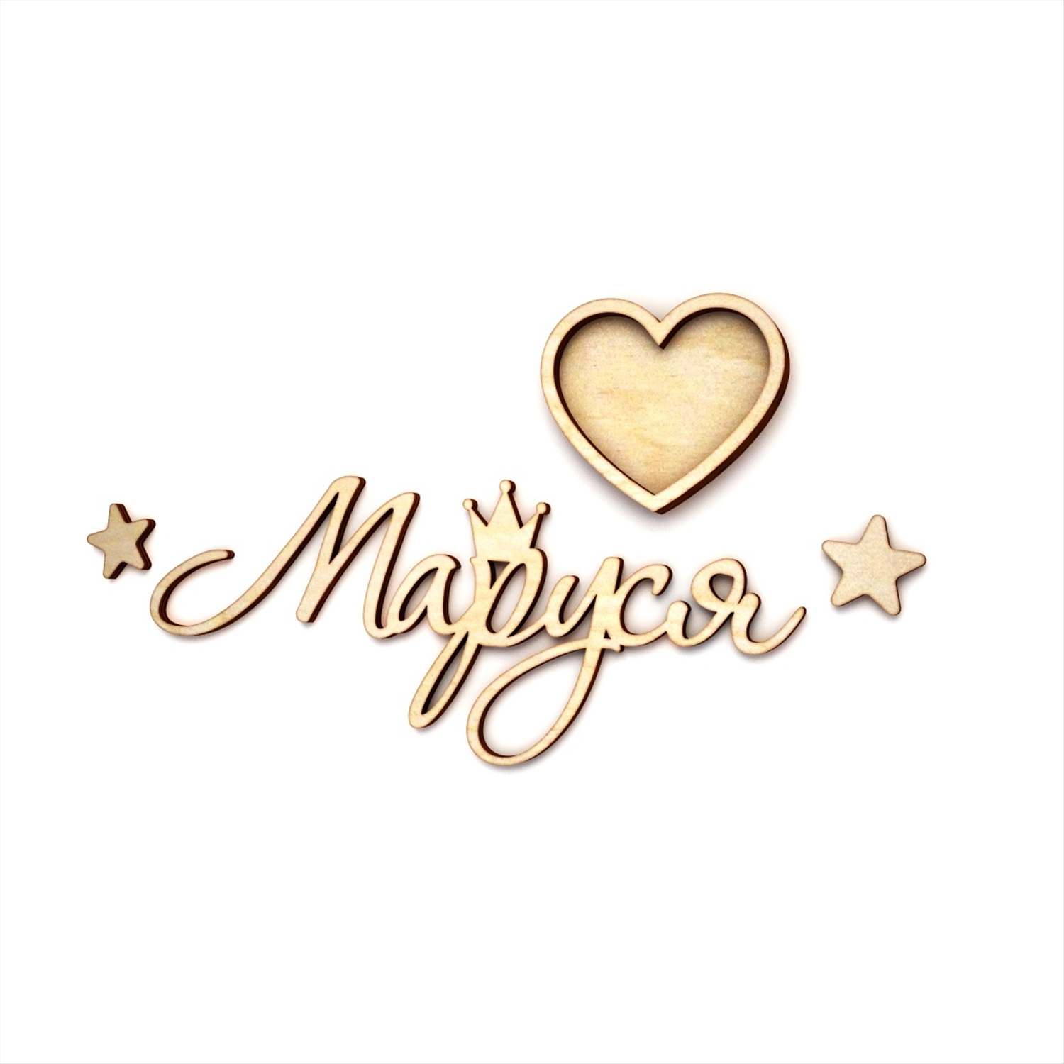 Имя "Маруся" с рамкой в виде сердечка, звездами и короной.