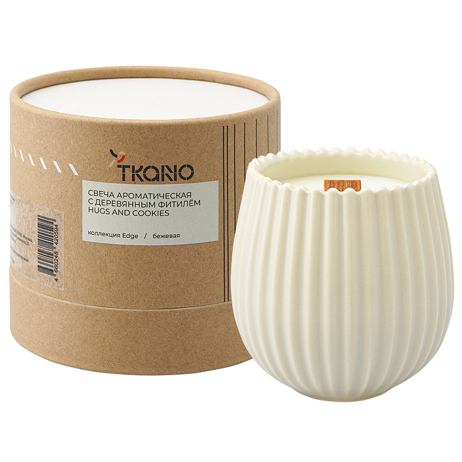 Свеча ароматическая с деревянным фитилём Hugs and Cookies из коллекции Edge, бежевый, 60 ч 6 фото