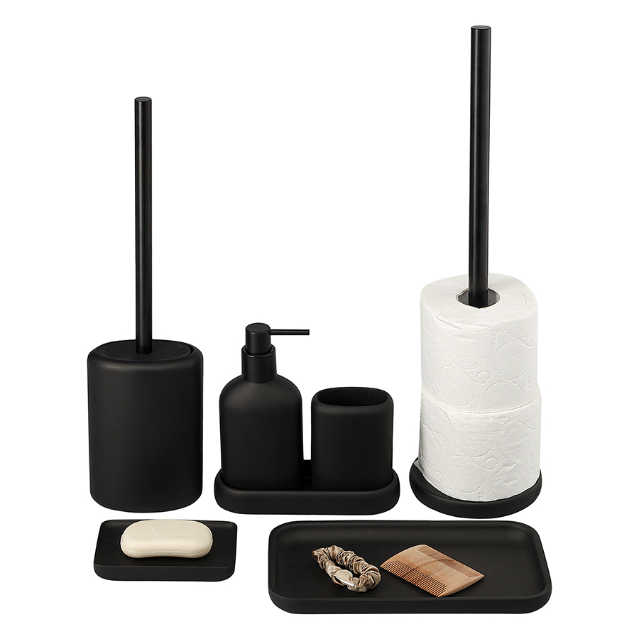 Держатель для туалетной бумаги с полочкой и ершиком Slim, черный 4 фото