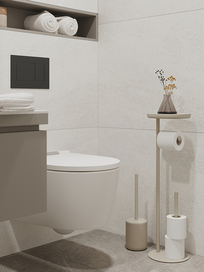 Держатель для туалетной бумаги с полочкой и ершиком Slim, светло-серый 3 фото