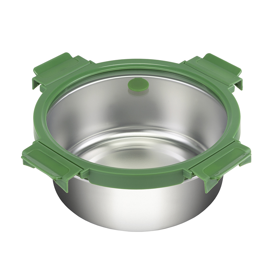 Ланч-бокс стальной со стеклянной крышкой, 1,5 л, зеленый 4 фото