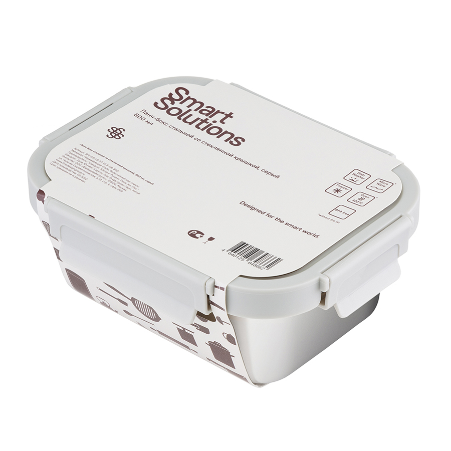 Ланч-бокс стальной со стеклянной крышкой, 800 мл, серый 4 фото