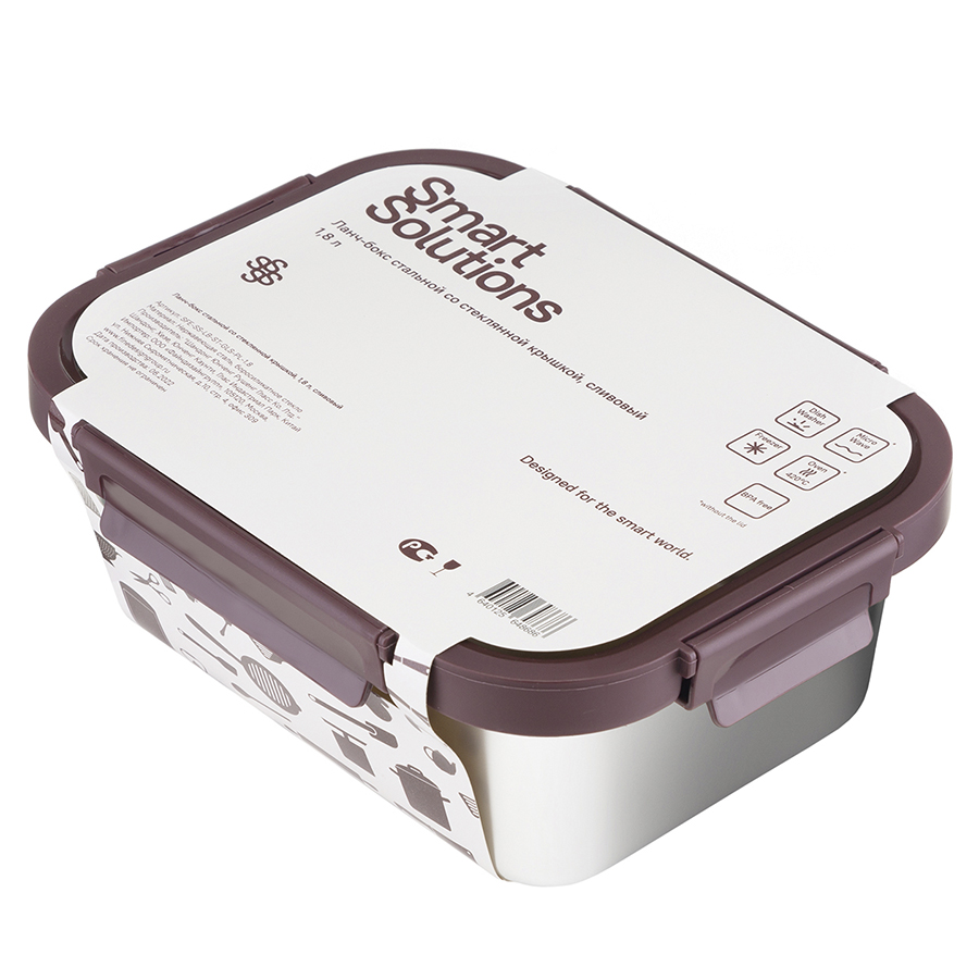 Ланч-бокс стальной со стеклянной крышкой, 1,5 л, сливовый 6 фото