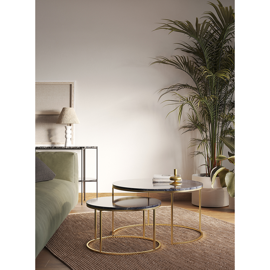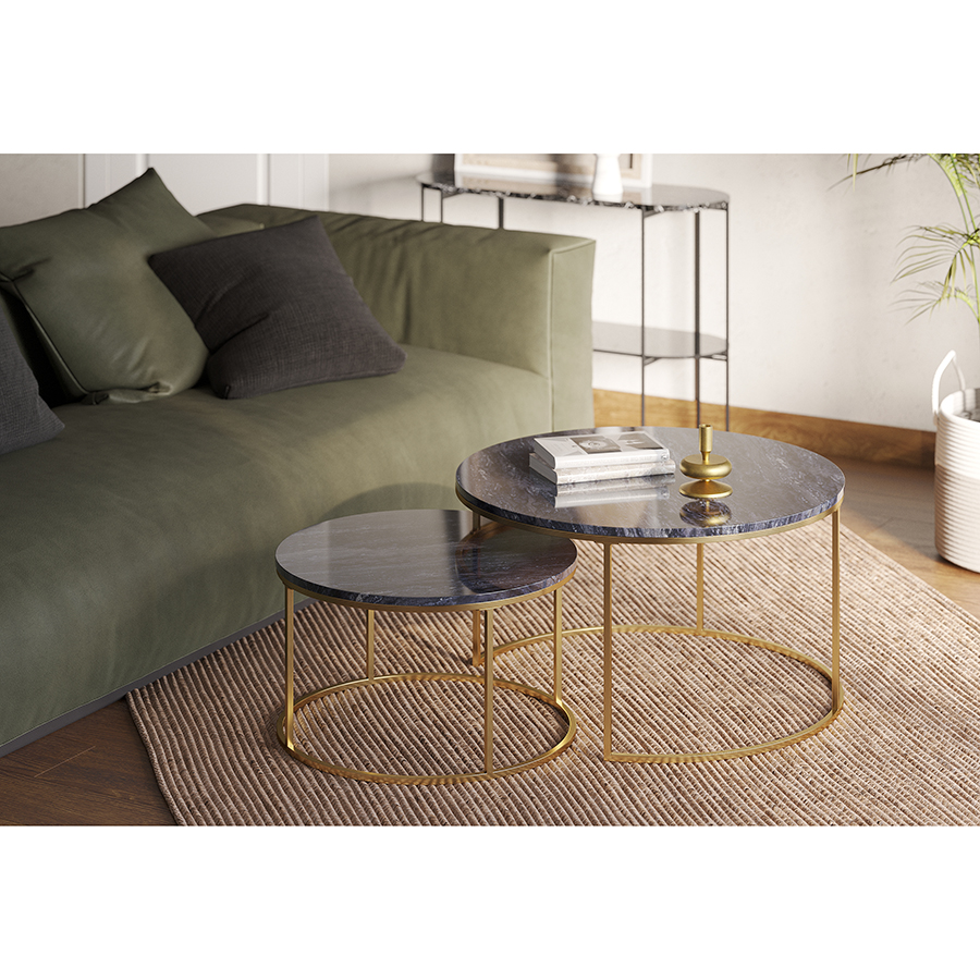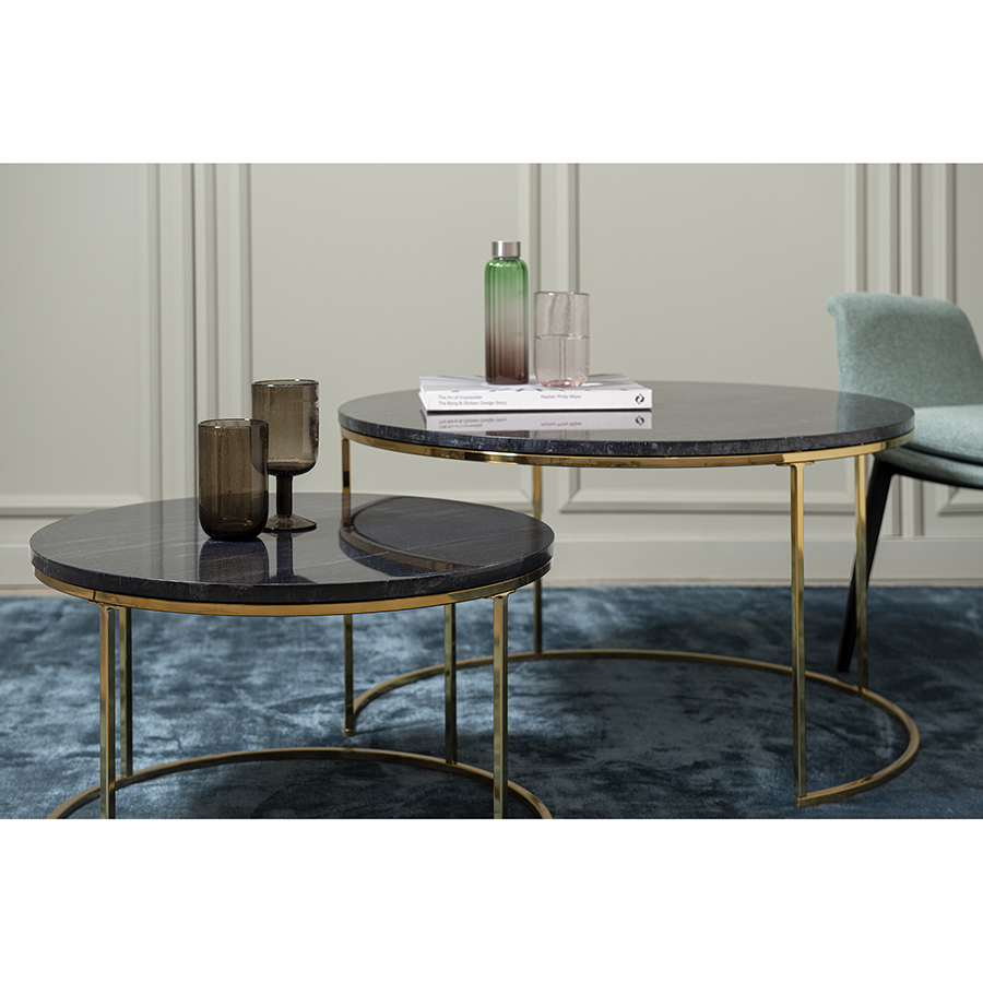 Набор из 2-х журнальных столиков Hans, Ø60 см и Ø80 см, черный мрамор 10 фото