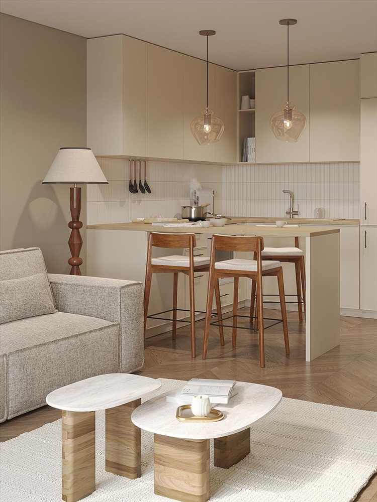 Стул барный Helning, мягкий шенилл, светло-коричневый 4 фото
