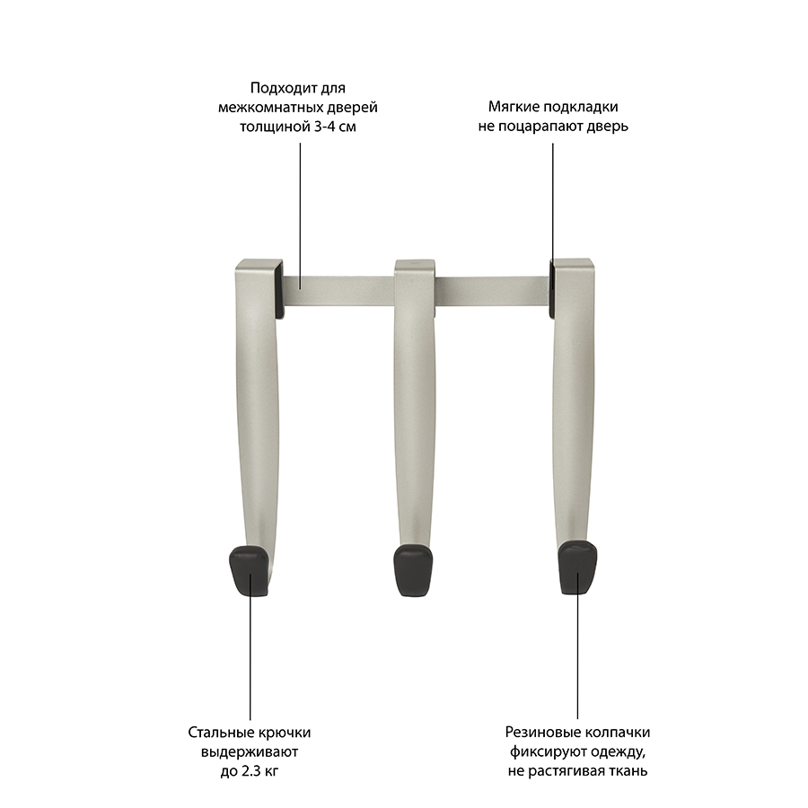 Вешалка надверная Schnook, 23 см, черная-никель, 3 крючка 5 фото