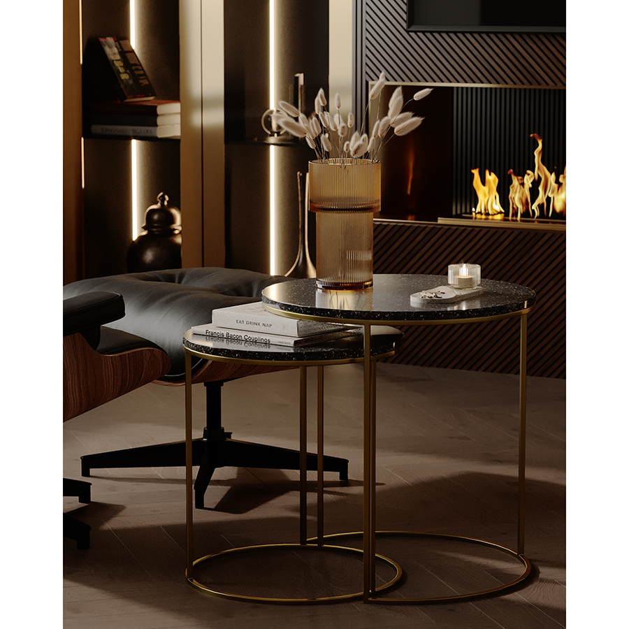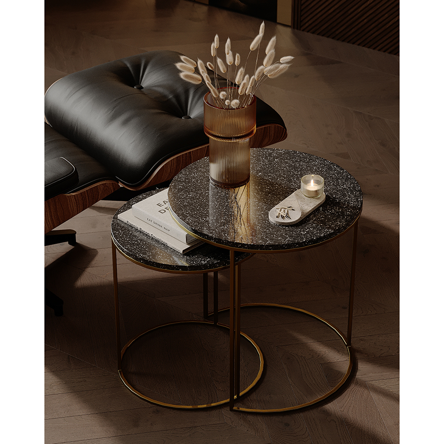 Набор из 2-х кофейных столиков Hans, Ø40 см и Ø50 см, черный мрамор 10 фото