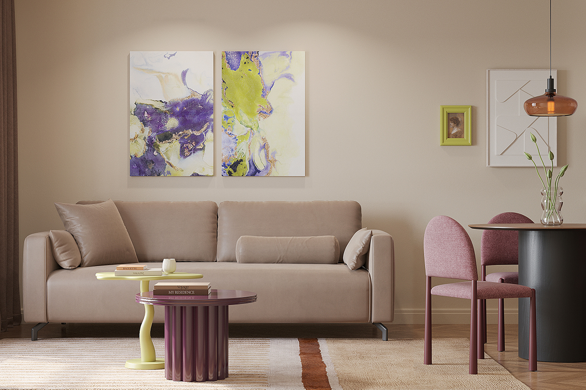 Банкетка Pea, велюр, бежевая/желтая 9 фото