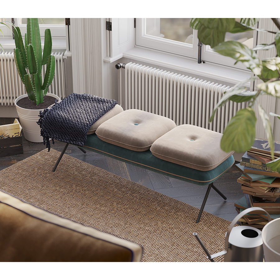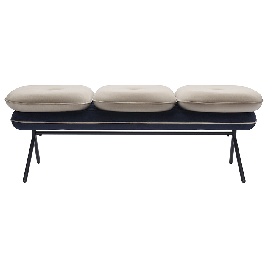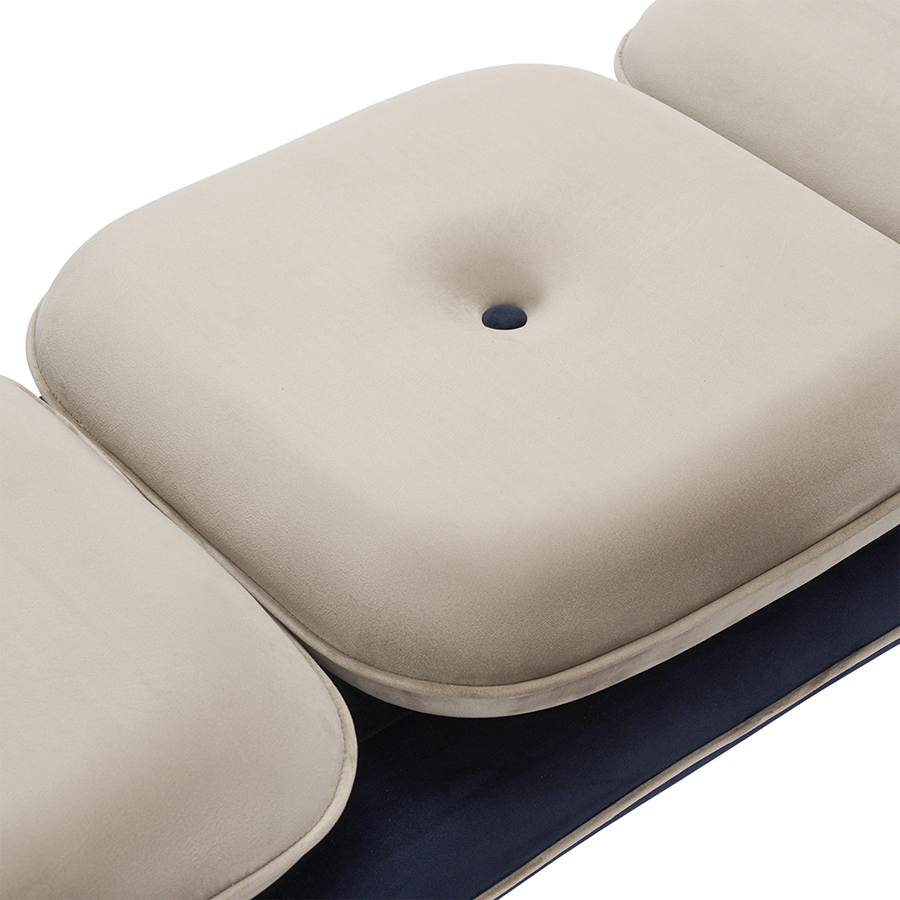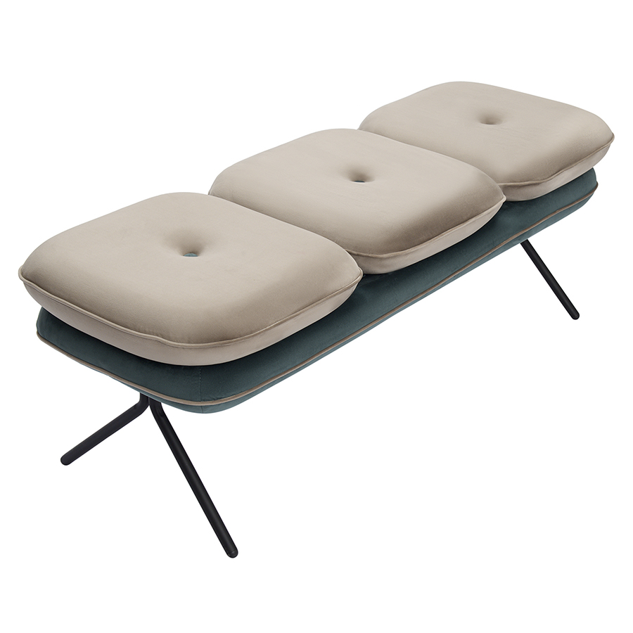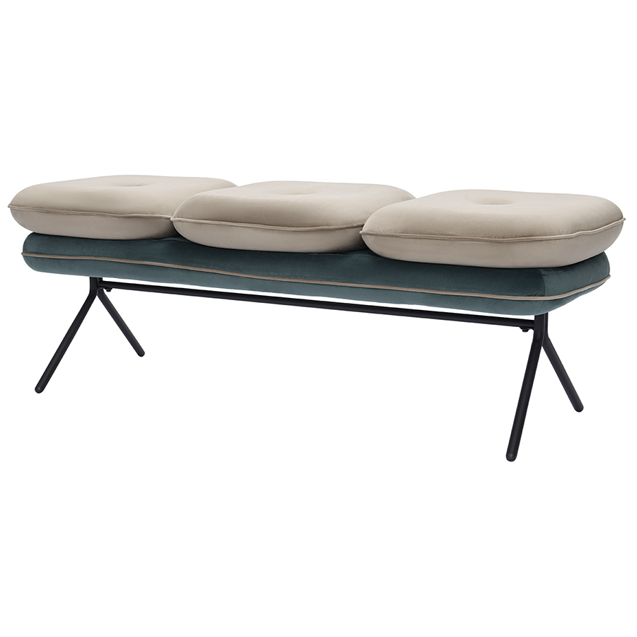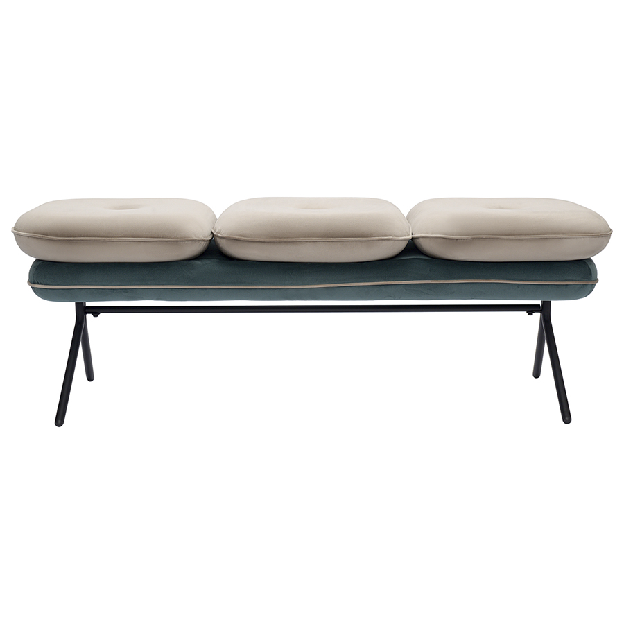 Банкетка Pea, велюр, бежевая/сине-зеленая 10 фото