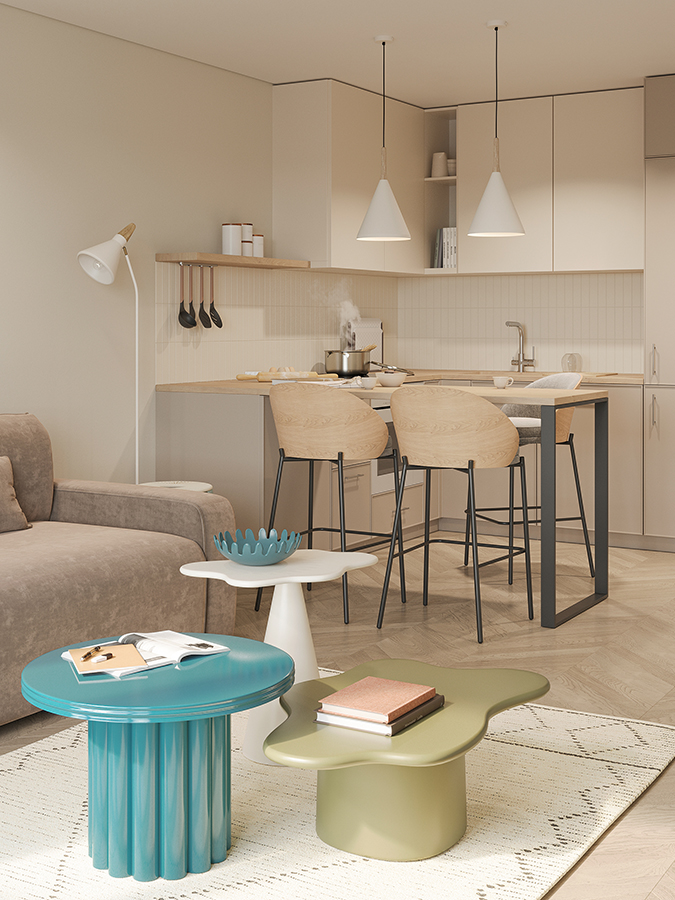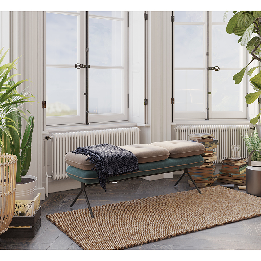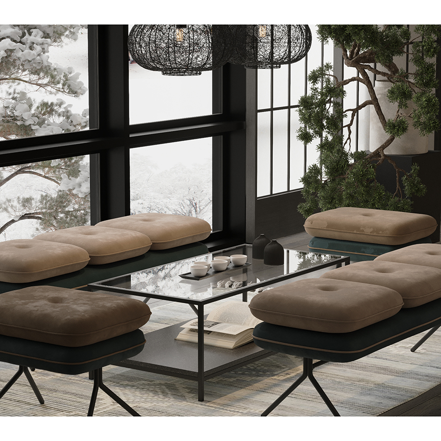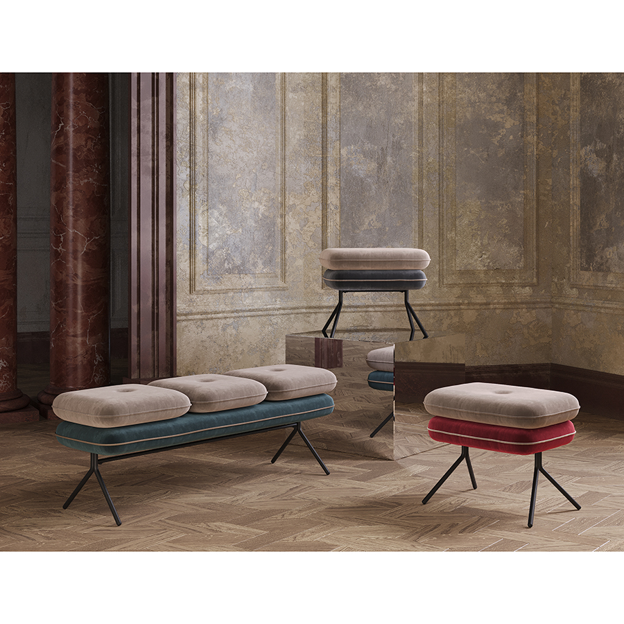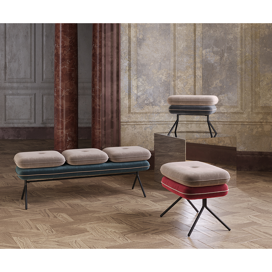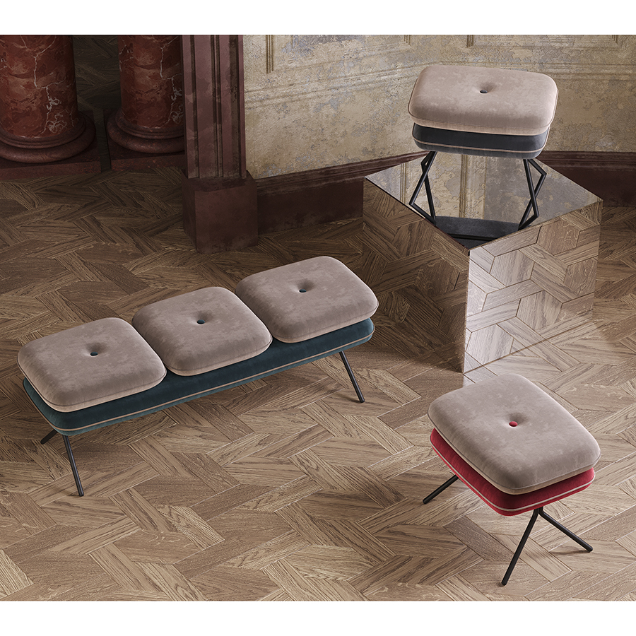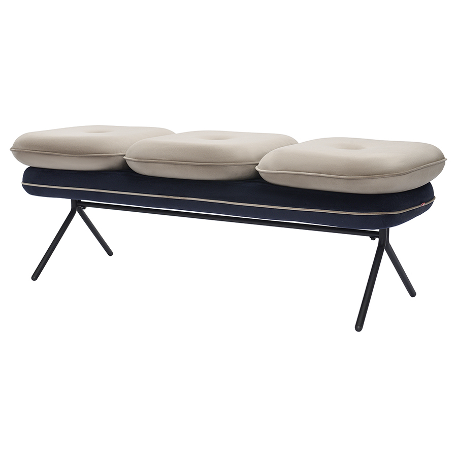 Банкетка Pea, велюр, бежевая/сине-зеленая 10 фото
