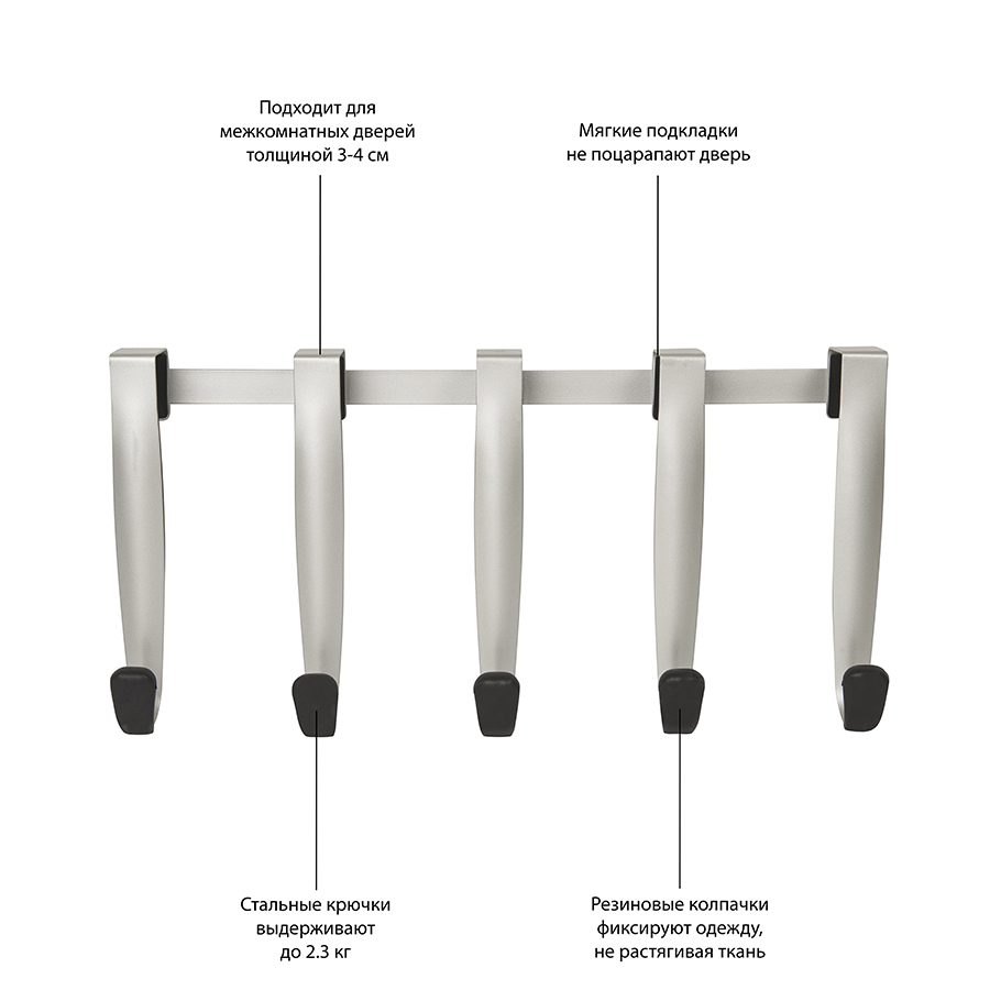 Вешалка надверная Schnook, черная-никель, 43 см, 5 крючков 8 фото
