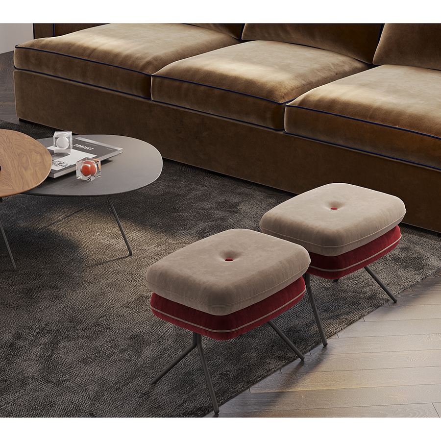 Пуф Pea, велюр, бежевый/бордовый 10 фото