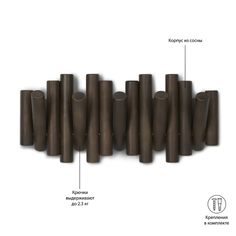 Вешалка настенная Sticks, 49,3 см, эспрессо, 5 крючков 10 фото