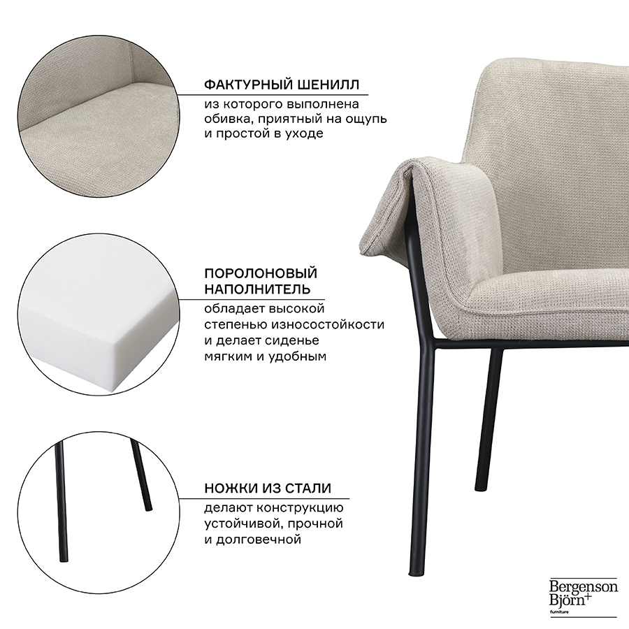 Стул Aline, шенилл, серо-бежевый/бежевый 7 фото