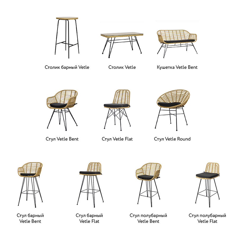 Стул полубарный Vetle Flat, ротанг 7 фото