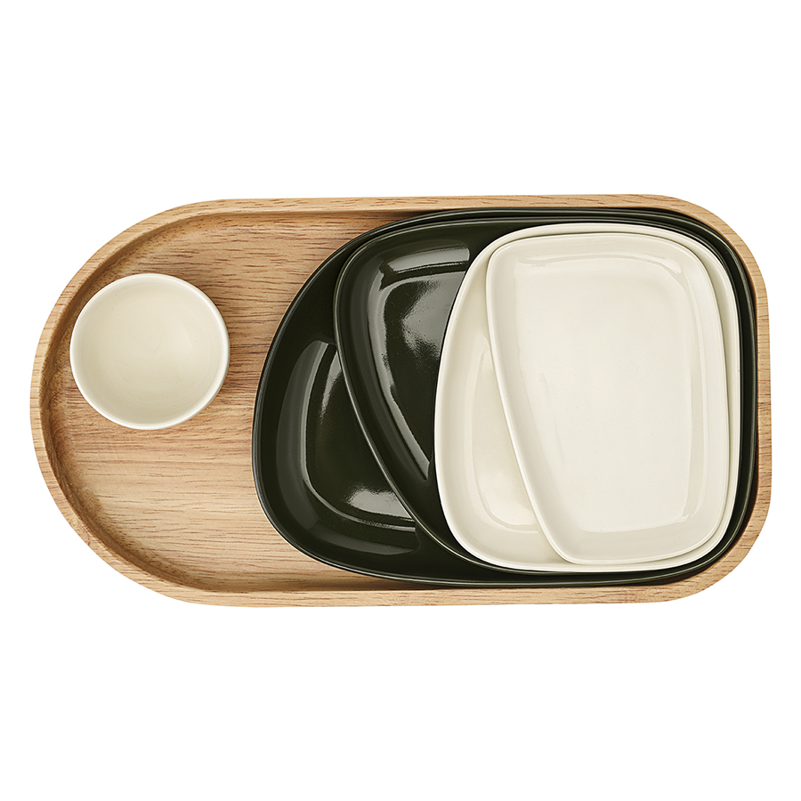 Набор из 5-ти сервировочных тарелок на деревянном подносе Sorrento 10 фото