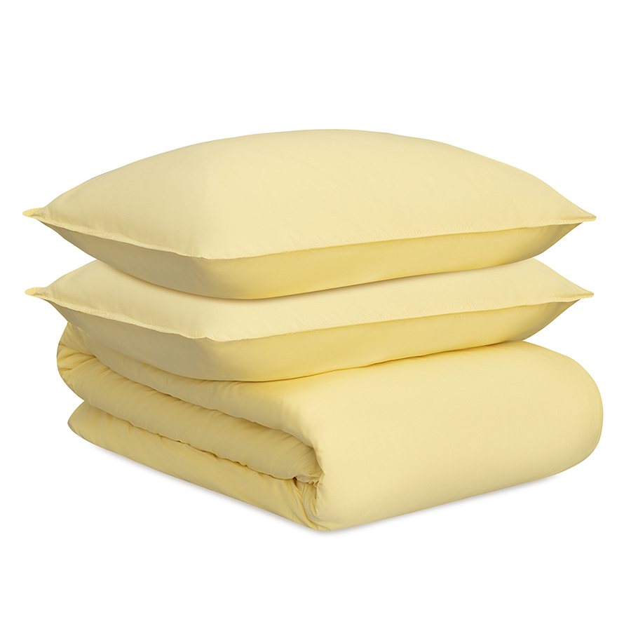 Комплект постельного белья из стираного перкаля светло-желтого цвета из коллекции Essential, 200х220 см 10 фото