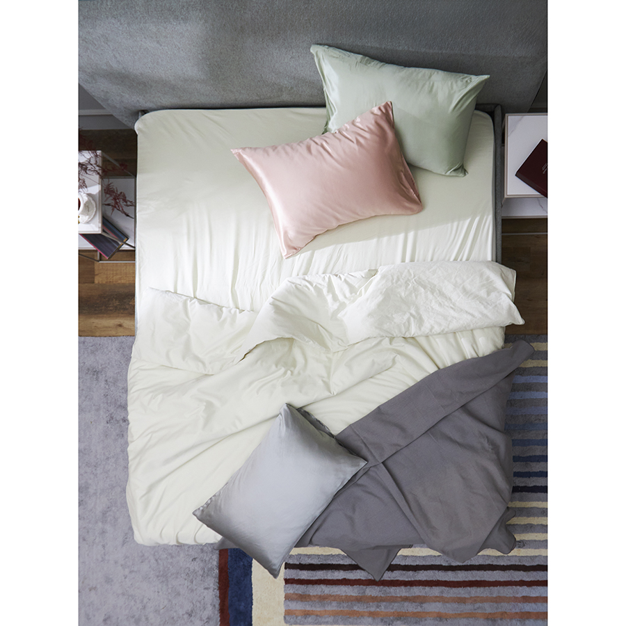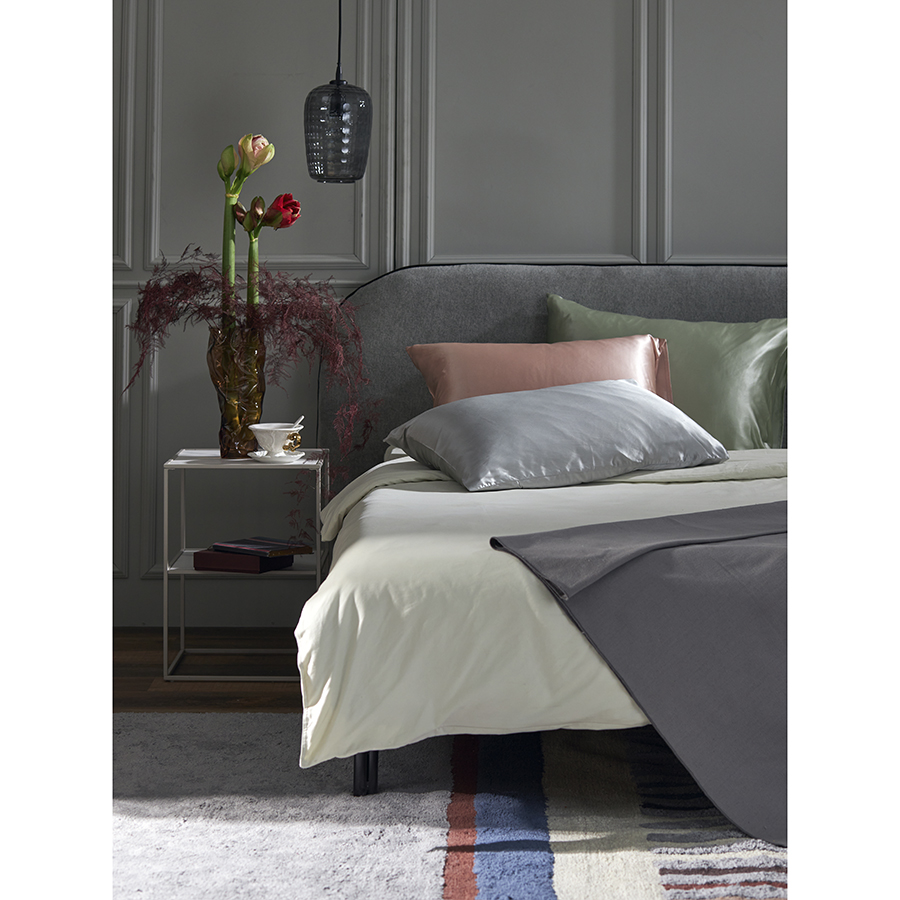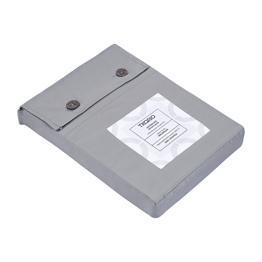 Простыня на резинке из премиального сатина светло-серого цвета из коллекции Essential,  160х200х30 с 8 фото
