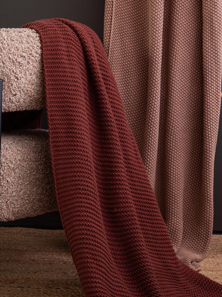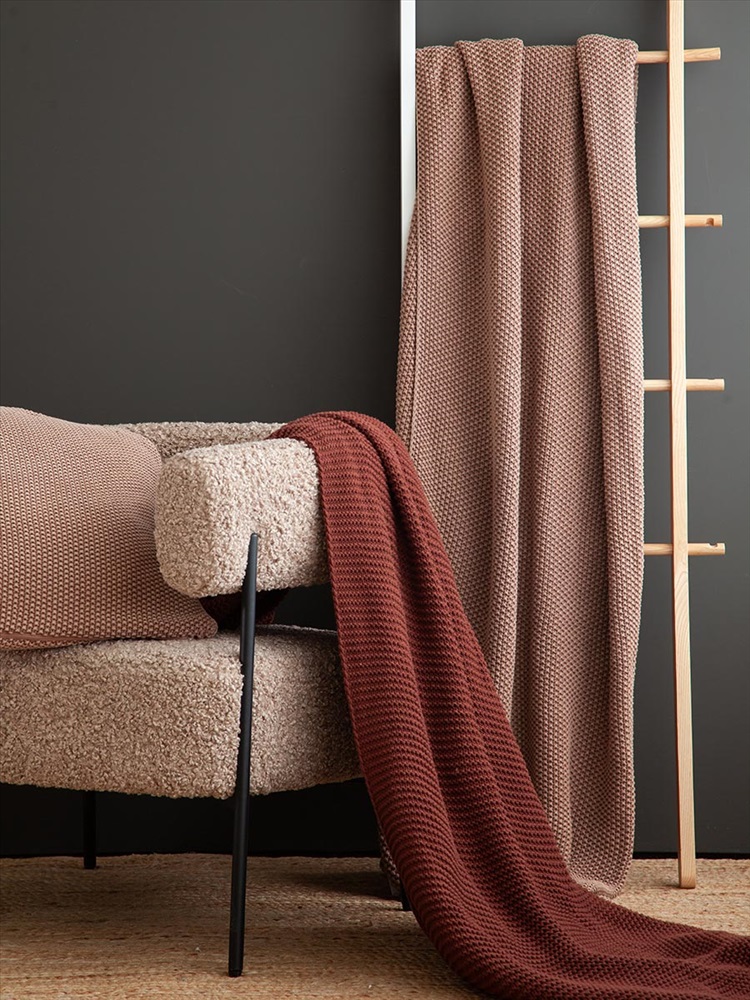 Плед из хлопка жемчужной вязки коричневого цвета из коллекции Essential, 130x180 см 9 фото