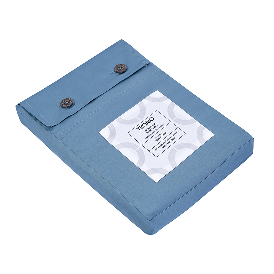 Простыня на резинке из премиального сатина джинсово-синего цвета из коллекции Essential,  160х200х30 8 фото