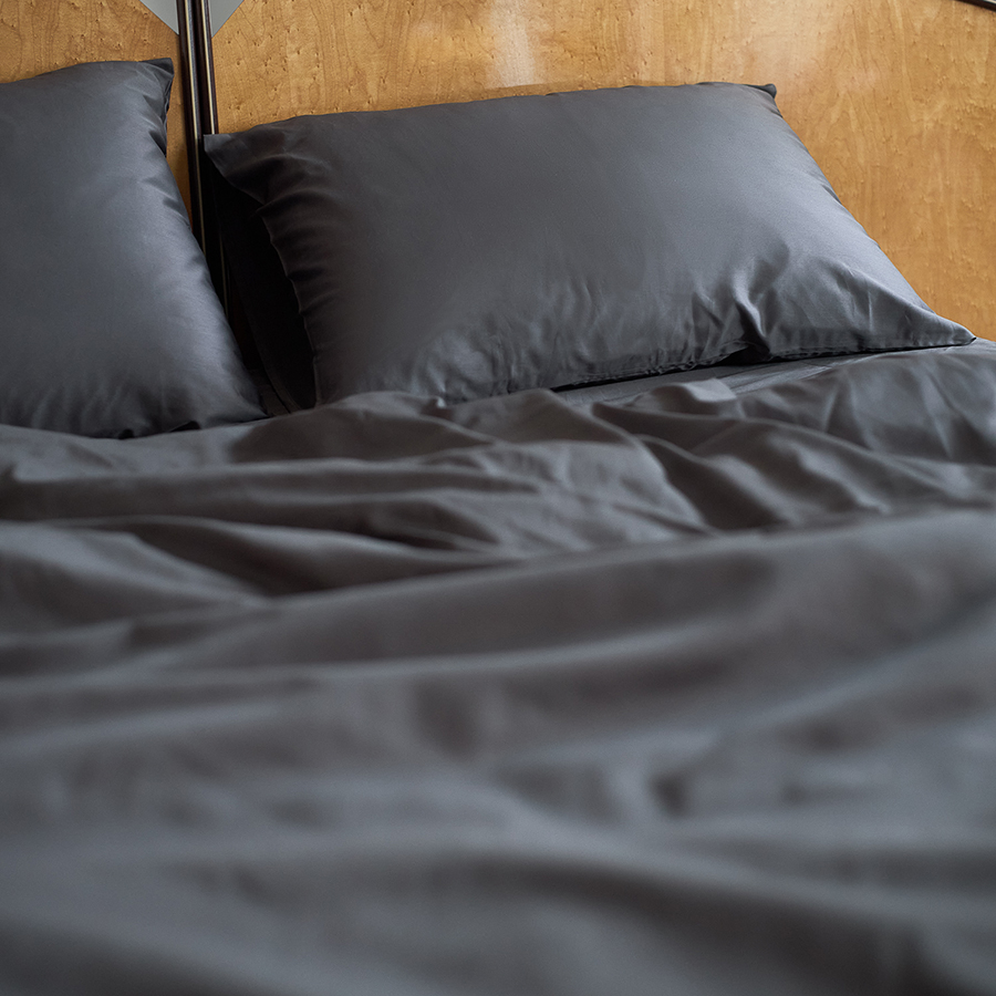 Комплект постельного белья из премиального сатина темно-серого цвета из коллекции Essential, 200х220 см 10 фото
