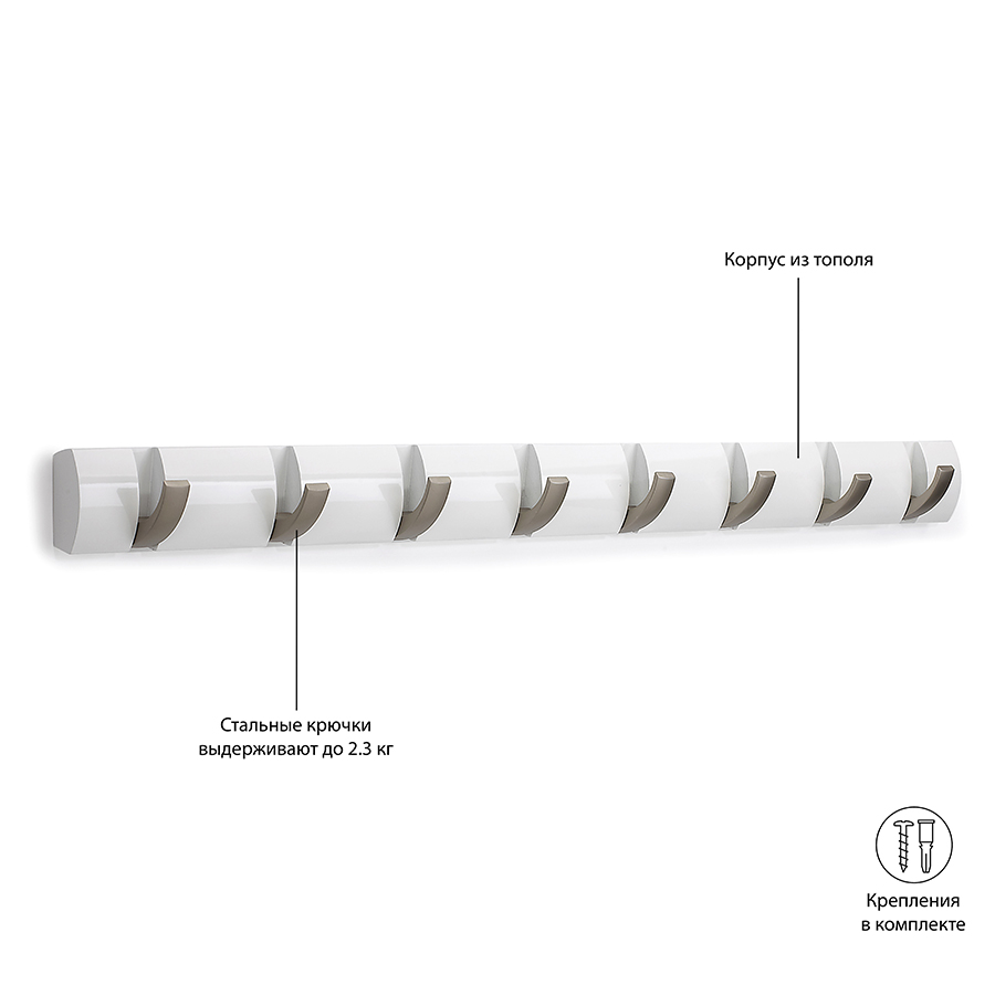 Вешалка настенная Flip, 84,5 см, белая, 8 крючков 5 фото