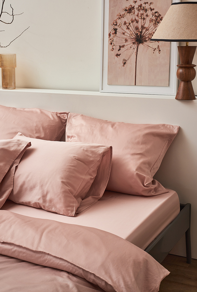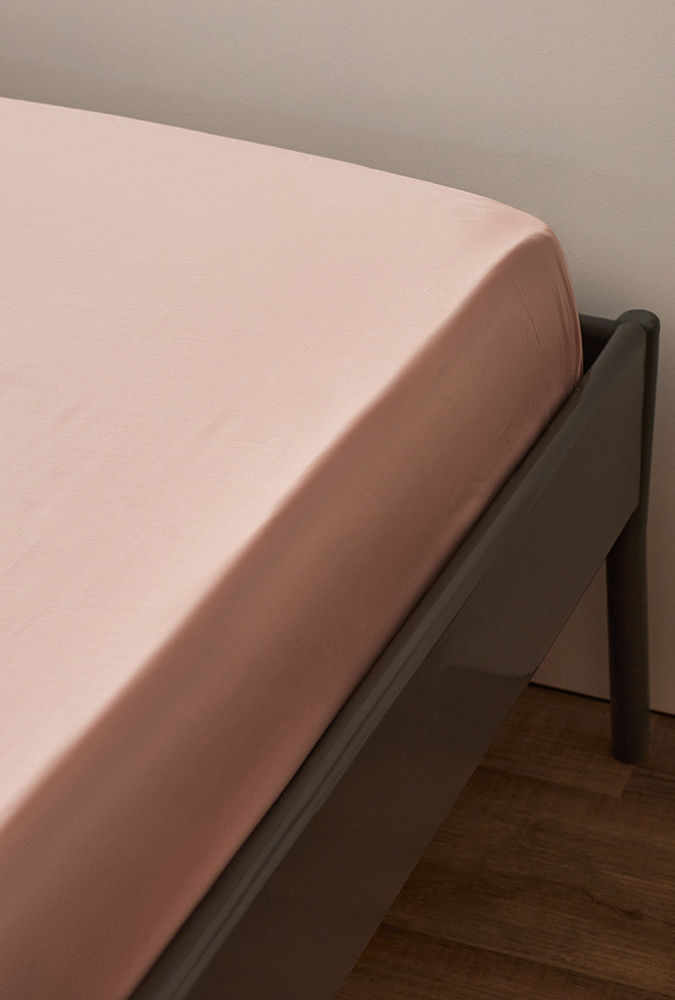 Простыня на резинке из премиального сатина цвета пыльной розы из коллекции Essential, 180х200х30 см 10 фото